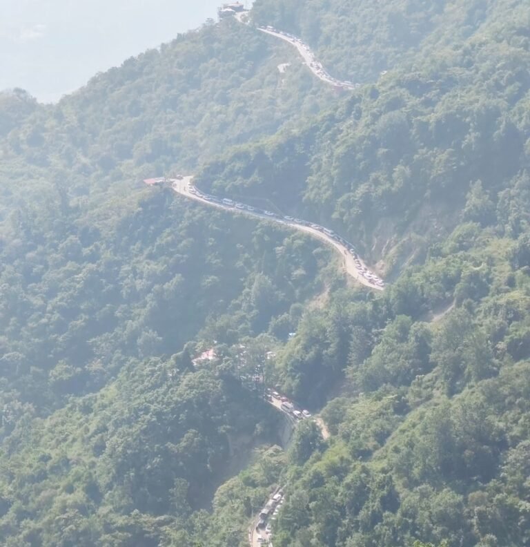 बैली ब्रिज से कोल्हूखेत और गलोगी धार तक वाहनों की लंबी कतारें लग गई हैं। पुलिस ने कई जगहों पर जवान तैनात किए हैं और ट्रैफिक को नियंत्रित करने की पूरी कोशिश की जा रही है, लेकिन बढ़ते वाहनों के दबाव ने मुश्किलें बढ़ा दी हैं।