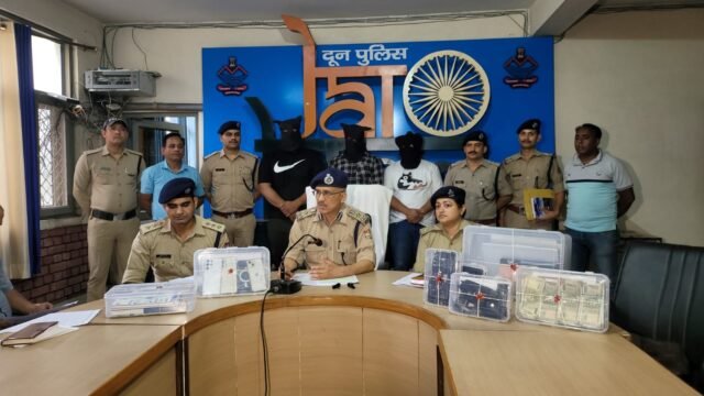 दून पुलिस का आपरेशन प्रहार, बॉलीवुड फिल्म स्पेशल छब्बीस की तर्ज पर नकली सीबीआई अधिकारी बनकर लूट करने वाले गिरोह का दून पुलिस ने किया पर्दाफाश, अपराध में सम्मिलित तीन व्यक्तियों को रायपुर पुलिस व एसओजी की संयुक्त टीम ने किया गिरफ्तार, अभियुक्तगणों के कब्जे से लूटी गयी नगदी 2,00,000/-रूपये नगद, 06 मंहगे मोबाइल फोन, 02 लैपटाप, एक टैब, महत्वपूर्ण रजिस्टर, घटना में प्रयुक्त कार, नकली पिस्टल, वाकी टाकी को किया बरामद ।
