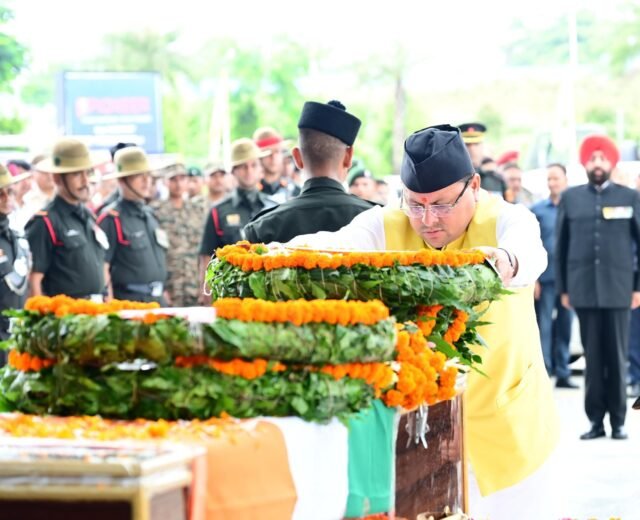 डोडा, जम्मू कश्मीर में आतंकवादियों से मुठभेड़ के दौरान शहीद हुए 48 राष्ट्रीय राइफल के कैप्टन दीपक सिंह का पार्थिव शरीर गुरुवार को जौलीग्रांट एयरपोर्ट देहरादून पहुंचा, जहां राज्यपाल लेफ्टिनेंट जनरल गुरमीत सिंह (से नि) एवं मुख्यमंत्री पुष्कर सिंह धामी ने उनके पार्थिव शरीर पर पुष्प चक्र अर्पित किए। उन्होंने ईश्वर से पुण्यात्मा को अपने श्रीचरणों में स्थान एवं शोकाकुल परिजनों को दुःख सहने की शक्ति प्रदान करने की कामना की।
