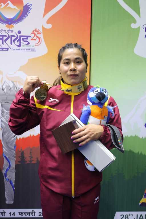 देहरादून: मणिपुर की स्टार वेइटलिफ्टर एस. बिंद्यारानी देवी ने राष्ट्रीय खेल में शानदार प्रदर्शन करते हुए महिला 55 किग्रा वर्ग में स्वर्ण पदक जीता और स्नैच कैटेगरी में नया राष्ट्रीय रिकॉर्ड बनाकर इतिहास रच दिया।
