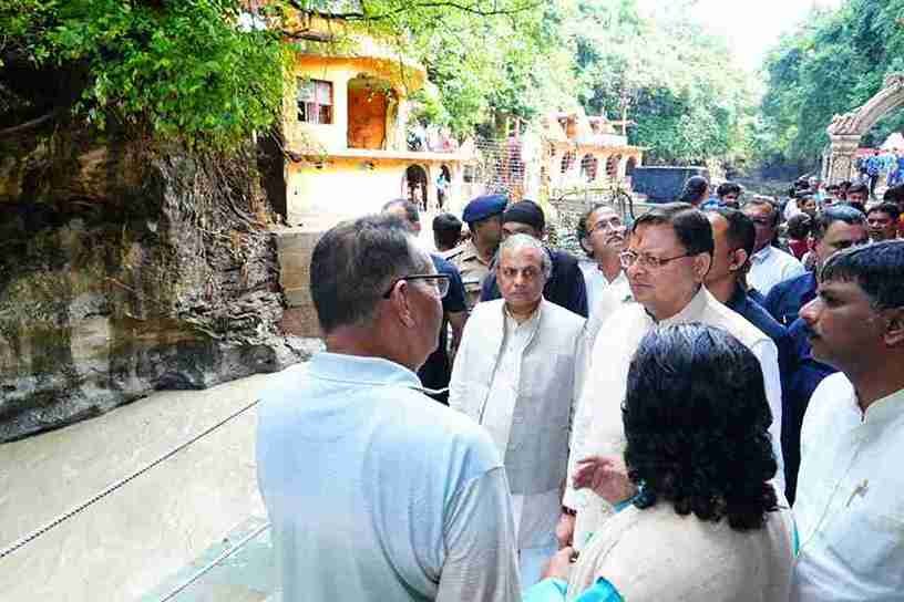 मुख्यमंत्री पुष्कर सिंह धामी ने गुरुवार को टपकेश्वर महादेव मंदिर क्षेत्र में अतिवृष्टि से प्रभावित स्थल का निरीक्षण किया। अतिवृष्टि के कारण मंदिर के अंदर जलभराव के साथ ही मलबा आ गया था, मलबा हटाने का कार्य अब पूर्ण हो चुका है। इस अवसर पर मुख्यमंत्री ने मंदिर के पुजारियों और स्थानीय लोगों से बातचीत भी की।