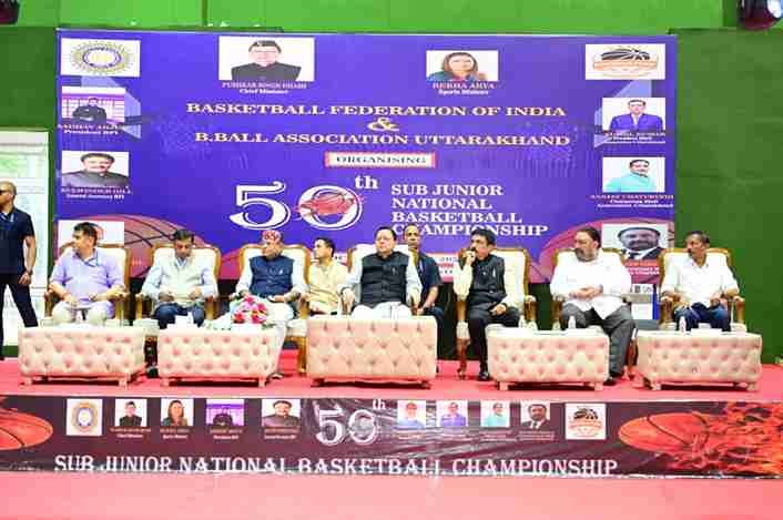 मुख्यमंत्री पुष्कर सिंह धामी ने शनिवार को परेड ग्राउंड, देहरादून में 50वीं सब-जूनियर राष्ट्रीय बास्केटबॉल चौंपियनशिप का शुभारंभ किया। 10 अक्टूबर तक चलने वाली इस प्रतियोगिता में देश के 28 राज्यों से 54 टीमों के लगभग एक हजार से अधिक खिलाड़ी प्रतिभाग कर रहे हैं। मुख्यमंत्री ने बास्केटबॉल फेडरेशन ऑफ इंडिया एवं उत्तराखंड बास्केटबॉल एसोसिएशन को इस आयोजन के लिए बधाई दी।