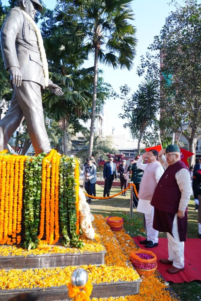 मुख्यमंत्री ने भारत के प्रथम सी डी एस जनरल बिपिन रावत की द्वितीय पुण्यतिथि के अवसर पर उनकी प्रतिमा पर पुष्पांजलि अर्पित की