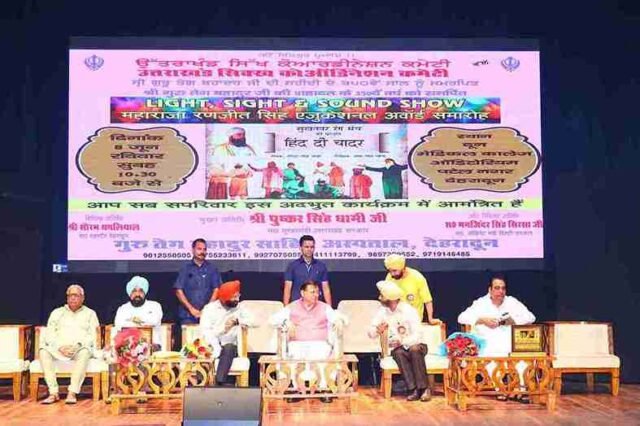मुख्यमंत्री पुष्कर सिंह धामी ने रविवार को गुरु तेग बहादुर जी के 350वें बलिदान वर्ष को समर्पित नाटक ‘हिन्द दी चादर’ के मंचन कार्यक्रम में प्रतिभाग किया। उत्तराखण्ड सिख कोआर्डिनेशन कमेटी एवं श्री गुरू तेग बहादुर चैरिटेबल चिकित्सालय द्वारा नाटक ‘हिन्द दी चादर’ का मंचन कार्यक्रम दून मेडिकल कॉलेज, पटेल नगर देहरादून में किया गया।