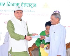 मुख्यमंत्री पुष्कर सिंह धामी ने बुधवार को देहरादून नगर निगम के अंतर्गत केदारपुरम में योगा पार्क एवं अन्य विकास कार्यों का लोकार्पण एवं शिलान्यास किया। इस अवसर पर उन्होंने एआई चैटबॉट ‘निगम सारथी’ लॉन्च किया और हरित नीति के डोक्यूमेंट का अनावरण भी किया। मुख्यमंत्री ने पर एक पेड़ माँ नाम के नाम के तहत रूद्राक्ष का पौधा रोपा, जो सरकार द्वारा चलाये गये बृहद पौधारोपण अभियान के तहत नगर निगम क्षेत्र देहरादून के अन्तर्गत इस वर्ष रोपा गया एक लाखवां पौधा था। कार्यक्रम में मुख्यमंत्री ने स्वच्छता सम्मान सेनानियों और कर निरीक्षकों को सम्मानित भी किया। इस अवसर पर मुख्यमंत्री ने नशा मुक्ति के लिए सामूहिक शपथ भी दिलाई।