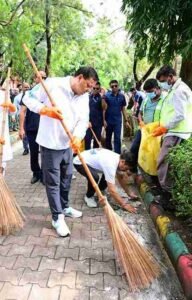 मुख्यमंत्री ने स्वच्छता अभियान के तहत झाड़ू लगाकर स्वच्छता का संदेश दिया और सभी प्रदेशवासियों से स्वच्छता की मुहिम से जुड़ने की अपील की। उन्होंने कहा कि 17 सितंबर से 2 अक्टूबर तक प्रदेश भर में सेवा स्वच्छता से संबंधित नियमित कार्यक्रम किए जाएंगे। इस अवसर पर उन्होंने राष्ट्रपिता महात्मा गांधी की मूर्ति पर श्रद्धा सुमन अर्पित भी किए। कार्यक्रम के दौरान उन्होंने स्वच्छता की शपथ दिलाई और पौधारोपण भी किया। मुख्यमंत्री ने इस अवसर पर स्वच्छता रथ का फ्लैग ऑफ किया और पर्यावरण मित्रों को सम्मानित भी किया।
