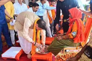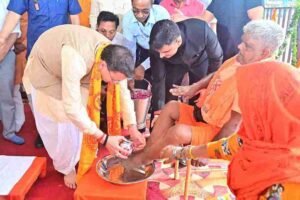 - मुख्यमंत्री श्री पुष्कर सिंह धामी ने ओम पुल में आयोजित कार्यक्रम में कांवड़ियों के पांव धोकर (प्रक्षालन) कावड़ियों/शिव भक्तों का किया स्वागत किया।