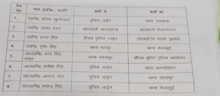 Home राज्य समाचार उत्तराखण्ड देहरादून एसएसपी ने कर दिए बंपर तबादले राज्य समाचारउत्तराखण्ड देहरादून एसएसपी ने कर दिए बंपर तबादले By Web Editor - October 6, 2025 33 0 FacebookTwitterPinterestWhatsApp *दिनांक 5/10/2025 को वरिष्ठ पुलिस अधीक्षक देहरादून द्वारा निम्न निरीक्षकों/उप निरीक्षकों के स्थानांतरण उनके नाम के सम्मुख अंकित स्थानों पर किये गए।*