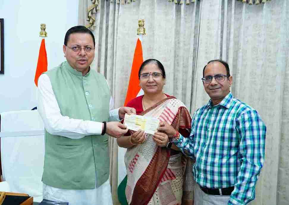 मुख्यमंत्री पुष्कर सिंह धामी से मुख्यमंत्री आवास में आज दून विश्वविद्यालय की कुलपति प्रो. सुरेखा डंगवाल ने शिष्टाचार भेंट की और इस अवसर पर मुख्यमंत्री को दून विश्वविद्यालय के सभी शिक्षकों, अधिकारियों एवं कर्मचारियों का एक दिन का वेतन मुख्यमंत्री राहत कोष में योगदान स्वरूप भेंट किया, ताकि आपदा प्रभावित लोगों की मदद की जा सके। मुख्यमंत्री पुष्कर सिंह धामी ने इस सामूहिक सहयोग भावना की सराहना करते हुए कहा कि आपदा की इस घड़ी में दून विश्वविद्यालय का यह योगदान न केवल एक प्रेरक कदम है, बल्कि यह राज्य के शैक्षणिक संस्थानों की सामाजिक जिम्मेदारी और संवेदनशीलता को भी दर्शाता है।