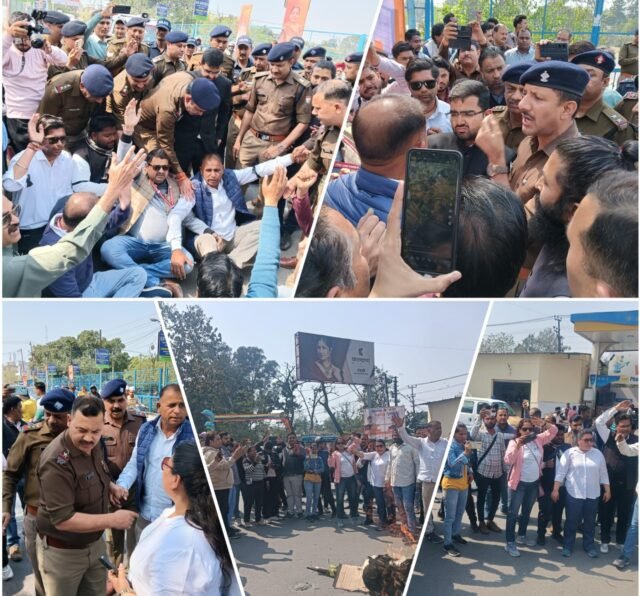 रुड़की। पत्रकारों का अपमान करने के विरोध में मंगलवार को विधायक प्रदीप बत्रा और मेयर अनीता अग्रवाल के खिलाफ नारेबाजी कर उनका पुतला फूंका गया। इसके साथ ही तय किया गया कि दोनों जनप्रतिनिधियों के द्वारा माफी न मांगने तक सभी पत्रकार विरोध स्वरूप काली पट्टी बांधकर काम करेंगे। वहीं सीएम के सामने मामला रखने जा रहे पत्रकारों को पुलिस और प्रशासन के अधिकारियों ने रोक लिया।