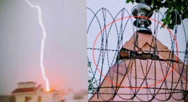 आश्रम के शिव मंदिर पर गिरी आकाशीय बिजली, शिखर हुआ क्षतिग्रस्त, वीडियो में कैद हुई घटना