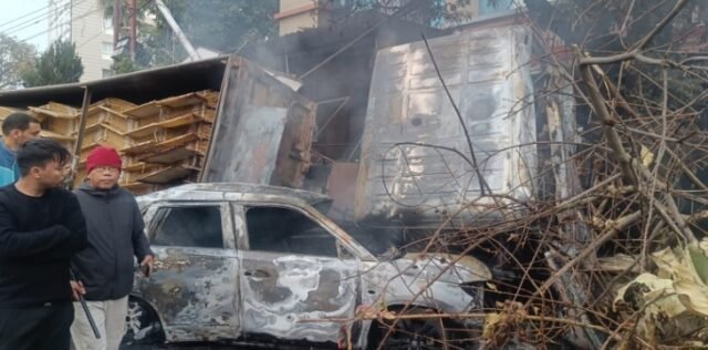 देहरादून के मोहब्बेवाला चौक पर बुधवार सुबह उस समय अफरातफरी मच गई जब एक अनियंत्रित ट्रक अचानक कार के ऊपर पलट गया। हादसे के तुरंत बाद दोनों वाहनों में भीषण आग लग गई, जिससे क्षेत्र में दहशत का माहौल बन गया।
