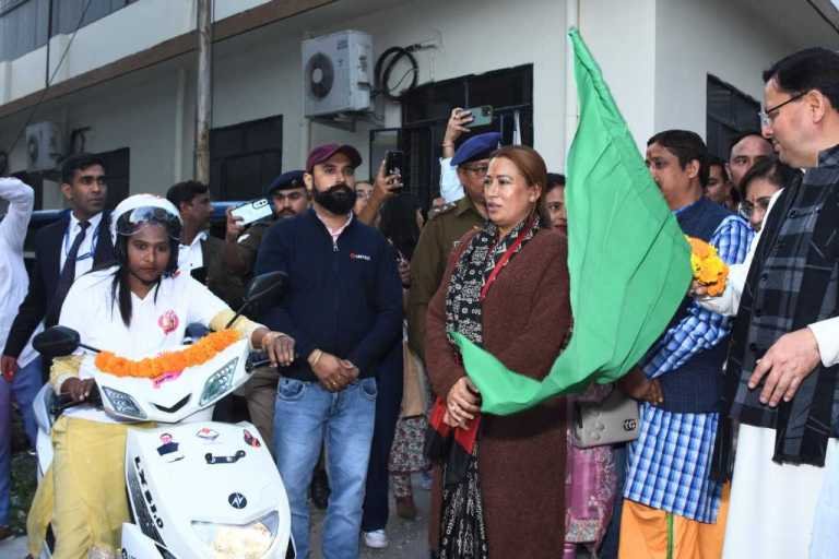 *महिला सारथी के साथ शहर में मंत्री रेखा आर्या नें ली राइड*