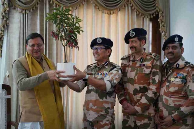 नववर्ष पर मुख्यमंत्री आवास में मुख्यमंत्री  पुष्कर सिंह धामी से महानिरीक्षक आईटीबीपी संजय गुंज्याल एवं आईटीबीपी के अन्य वरिष्ठ अधिकारियों ने मुलाकात कर नव वर्ष की बधाई दी। मुलाकात के दौरान महानिरीक्षक आईटीबीपी ने समसामयिक विषयों पर चर्चा करते हुए हाल ही में सब्जियां/मांस व दूरस्थ वाइब्रेंट विलेज हेतु टेली मेडिसिन पहुंचाने हेतु उत्तराखण्ड सरकार के साथ हुए एम.ओ.यू. के बारे में जानकारी साझा की।