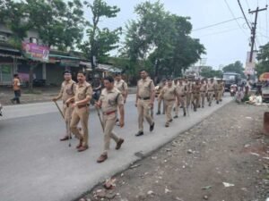 त्रि-स्तरीय पंचायत निर्वाचन को सकुशल सम्पन्न कराने के लिए पुलिस ने किया फ्लैग मार्च*