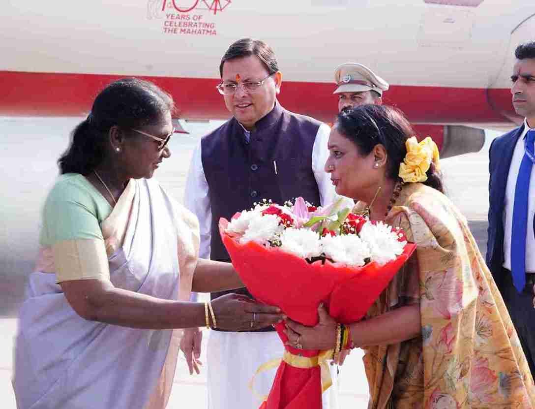 राष्ट्रपति श्रीमती द्रौपदी मुर्मु के जौलीग्रांट एयरपोर्ट आगमन पर राज्यपाल लेफ्टिनेंट जनरल गुरमीत सिंह (से नि), मुख्यमंत्री श्री पुष्कर सिंह धामी , विधानसभा अध्यक्ष श्रीमती ऋतु खंडूड़ी भूषण, मंत्रीगणों, विधायकगणों और अन्य जनप्रतिनिधियों ने उनका स्वागत एवं अभिनंदन किया।