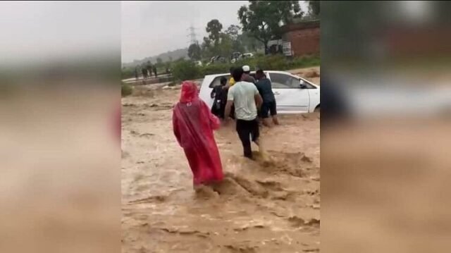 उफान पर आया बरसाती नाला, तेज बहाव में बह गई इनोवा
