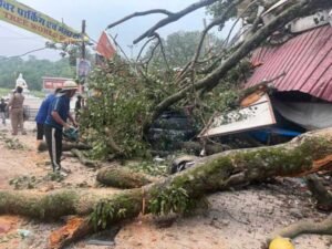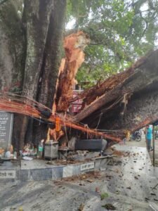 हालांकि पेड दो फाड़ हों गया जिसके नीचे एक कार और स्कूटी जों ख़डी थी वो आ गई थोड़ा नुकशान हुआ हैं वही पास के मकान के ऊपर छज्जा टूट गया