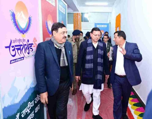 मुख्यमंत्री पुष्कर सिंह धामी ने सोमवार देर शाम महाराणा प्रताप स्टेडियम, देहरादून पहुंचकर 38वें राष्ट्रीय खेलों की विभिन्न व्यवस्थाओं का स्थलीय निरीक्षण कर जायजा लिया। मुख्यमंत्री ने अब तक की व्यवस्थाओं पर संतोष व्यक्त करते हुए राष्ट्रीय खेल हेतु उत्तराखंड आ रहे खिलाड़ियों का भव्य स्वागत किए जाने के निर्देश दिए।