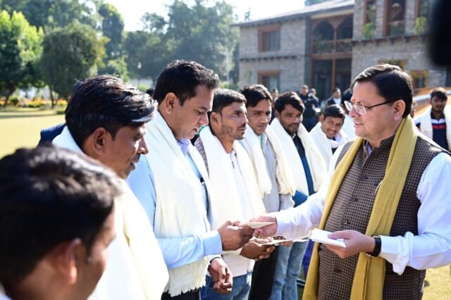 मुख्यमंत्री पुष्कर सिंह धामी ने गुरूवार को मुख्यमंत्री आवास में उत्तरकाशी के सिलक्यारा रेस्क्यू ऑपरेशन में टनल की खुदाई में अहम भूमिका निभाने वाले 12 रैट माइनर्स को शॉल ओढ़ाकर सम्मानित किया और सभी रैट माइनर्स को 50-50 हजार रूपये के सम्मान राशि के चेक भी प्रदान किये।