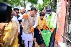 इसके बाद मुख्यमंत्री श्री पुष्कर सिंह धामी ने सीसीआर के पास गंगा घाट पहुॅचकर सफाई एवं स्वच्छता अभियान में प्रतिभाग करते हुए स्वंय झाड़ू लगाकर स्वच्छता का सन्देश दिया। मुख्यमंत्री ने कहा कि प्रधानमंत्री नरेंद्र मोदी के नेतृत्व में राज्य सरकार स्वच्छ भारत के संकल्प को साकार करने की दिशा में लगातार कार्य कर रही है। मुख्यमंत्री ने कावड़ यात्रा में आने वाले श्रद्धालुओं से स्वच्छता बनाए रखने का आग्रह किया।