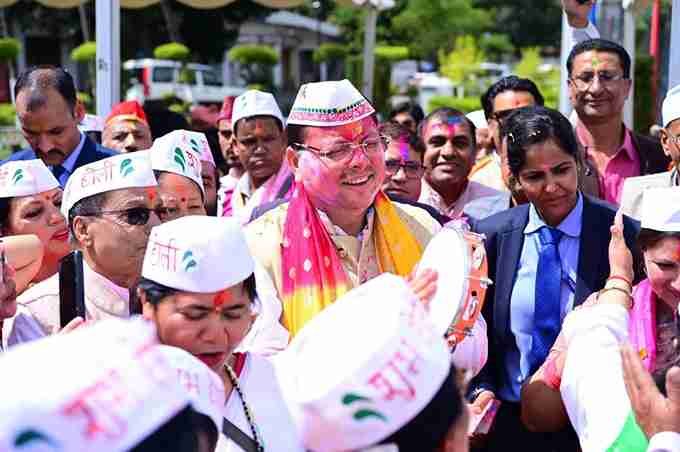 मुख्यमंत्री पुष्कर सिंह धामी लोक कलाकारों के संग होली के रंगों में पूरी तरह से रंगे नजर आए। उन्होंने विभिन्न दलों के कलाकारों के साथ काफी समय बिताया। उनके साथ वह थिरके भी। ढोल, थाली और अन्य पारंपरिक वाद्य यंत्रों पर हाथ भी आजमाया।