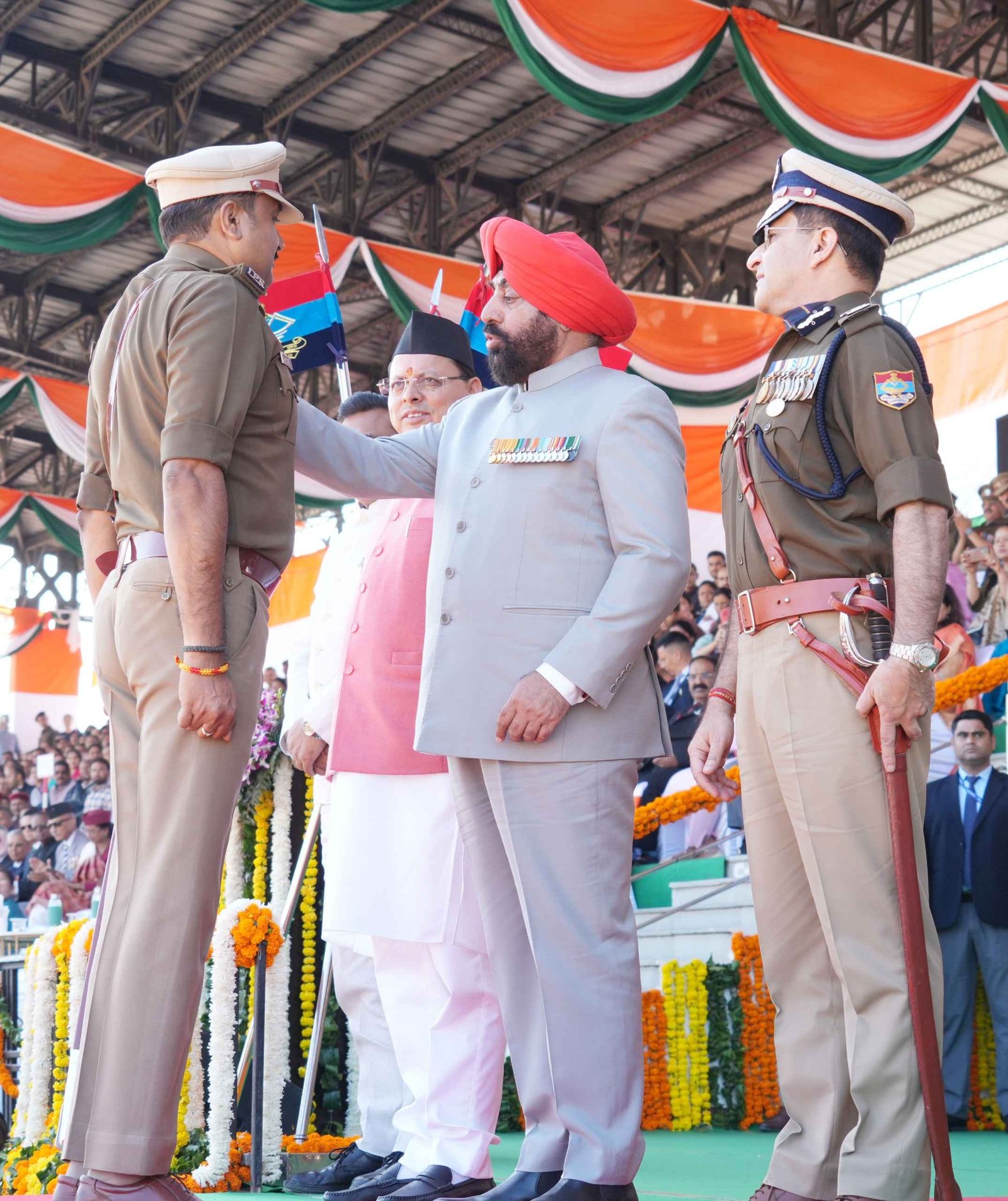 मुख्यमंत्री ने कहा कि राज्य निर्माण के इन 25 वर्षों की यात्रा में राज्य ने अनेकों चुनौतियों और समस्याओं का सामना करते हुए आज देश के अग्रणी और सशक्त राज्य के रूप में अपनी एक विशिष्ट पहचान बनाई है। समय-समय पर राज्य को कई प्राकृतिक आपदाओं और कठिन परिस्थितियों से भी जूझना पड़ा है। उन्होंने कहा कि विशिष्ट भौगोलिक परिस्थितियों में राज्य की कानून-व्यवस्था को बनाए रखना भी अपने आप में एक बड़ी चुनौती रही है। इन कठिनाइयों के बीच उत्तराखण्ड पुलिस ने राज्य की आत्मा की प्रहरी और मूक साधक की भांति प्रत्येक मोर्चे पर डटकर जनसेवा का अद्वितीय उदाहरण प्रस्तुत किया है। उत्तराखण्ड पुलिस ने महिला अपराधों के निराकरण में सराहनीय कार्य किया है। गृह मंत्रालय द्वारा जारी महिला अपराधों एवं पोक्सो अधिनियम के मामलों के निस्तारण में भी उत्तराखण्ड देश में पांचवें स्थान पर रहा है। उन्होंने कहा कि साइबर अपराधों पर प्रभावी लगाम लगाने के लिए तकनीकी क्षमता को और अधिक सशक्त बनाने के साथ ही ‘ड्रग फ्री उत्तराखण्ड’ के संकल्प को एक जन आंदोलन का रूप देना होगा।मुख्यमंत्री ने कहा कि प्रधानमंत्री श्री नरेंद्र मोदी जी के मार्गदर्शन में राज्य सरकार ने पिछले करीब साढ़े चार वर्षों में उल्लेखनीय उपलब्धियाँ हासिल की है। प्रदेश ने किसानों की आय में वृद्धि करने में देश भर में प्रथम स्थान प्राप्त किया है। राज्य की कंपाउंड एनुअल ग्रोथ रेट 12.69 प्रतिशत रही है, जो राष्ट्रीय औसत से चार गुना अधिक है। राज्य युवाओं को रोजगार के अवसर उपलब्ध कराने में देश का अग्रणी राज्य बनकर उभरा है। उत्तराखण्ड के चार गांवों जखोल, हर्षिल, गूंजी और सूपी को देश भर में सर्वश्रेष्ठ पर्यटन ग्राम पुरस्कार मिला है। राष्ट्रीय फिल्म पुरस्कारों में उत्तराखण्ड को मोस्ट फिल्म फ्रेंडली स्टेट के अवॉर्ड से भी सम्मानित किया गया है। सरकार राज्य के समग्र विकास के साथ-साथ अपने सांस्कृतिक मूल्यों और डेमोग्राफी को संरक्षित रखने हेतु भी पूर्ण रूप से संकल्पबद्ध है।