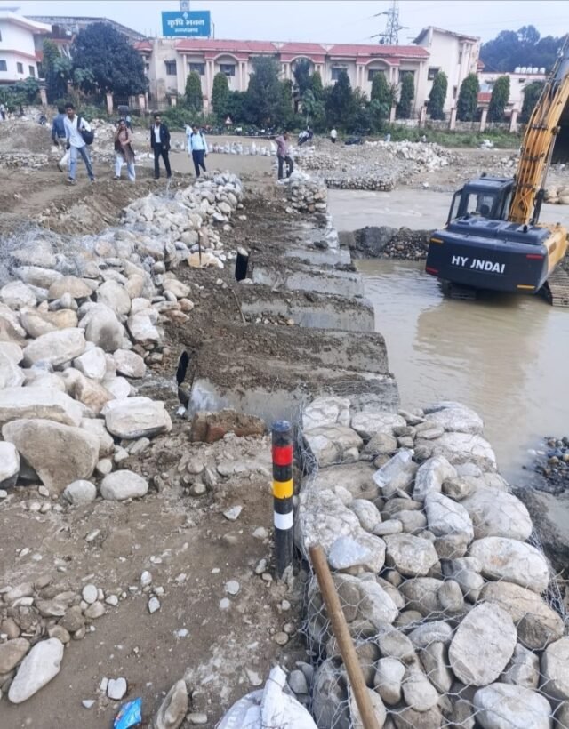 जानकारी के अनुसार, रविवार रात हुई बारिश से नदी में बहकर आई लकड़ियां पुल पर लगाए गए पाइपों में फंस गईं। इससे पानी की निकासी रुक गई और दबाव बढ़ने पर पाइप धंस गए। करीब 50 मीटर लंबा और 33 फीट चौड़ा यह पुल बजरी व सीमेंट के मिश्रण से तैयार किया गया था।