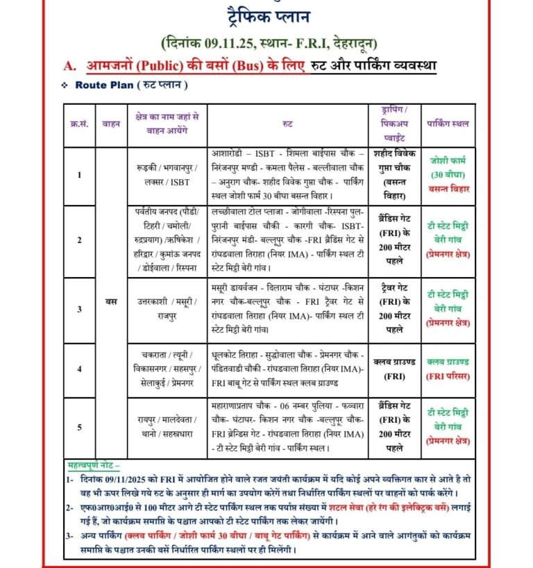दून में 9 नवंबर को रजत जयंती कार्यक्रम हेतु ट्रैफिक प्लान जारी, पीएम आगमन पर कई क्षेत्र जीरो जोन