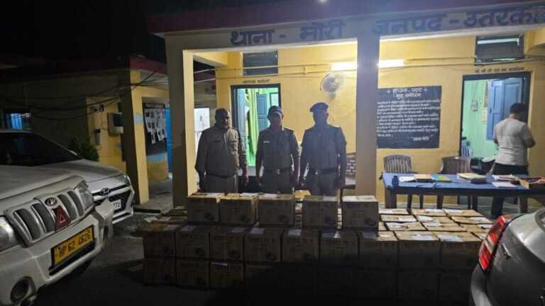 थाना मोरी पुलिस टीम द्वारा उत्तराखण्ड- हिमाचल बॉर्डर से अवैध शराब का जखीरा बरामद किया गया है। त्रिस्तरीय पंचायत चुनाव-2025 को निष्पक्ष एवं पारदर्शी तरीके से सम्पन्न करवाने हेतु उत्तरकाशी पुलिस पूरी तरह से मुस्तैद है, चुनाव के दौरान अवैध शराब व अवांछनीय गतिविधियों पर अंकुश लगाने हेतु *पुलिस अधीक्षक उत्तरकाशी, श्रीमती सरिता डोबाल* द्वारा स्टैटिक सर्विलांस टीम, उड़न दस्तों के साथ-साथ एसओजी व थाना पुलिस की टीम को एक्टिव मोड पर रखा गया है।