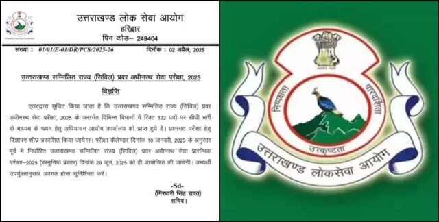 देहरादून: उत्तराखंड लोक सेवा आयोग (UKPSC) से एक महत्वपूर्ण सूचना सामने आई है। आयोग द्वारा 122 पदों पर भर्ती के लिए ने वेबसाइट पर विज्ञप्ति जारी की की गई है। उत्तराखंड सम्मिलित राज्य (सिविल) प्रवर अधीनस्थ सेवा परीक्षा, 2025 के तहत विभिन्न विभागों में 122 रिक्त पदों पर चयन के लिए सीधी भर्ती की जाएगी।